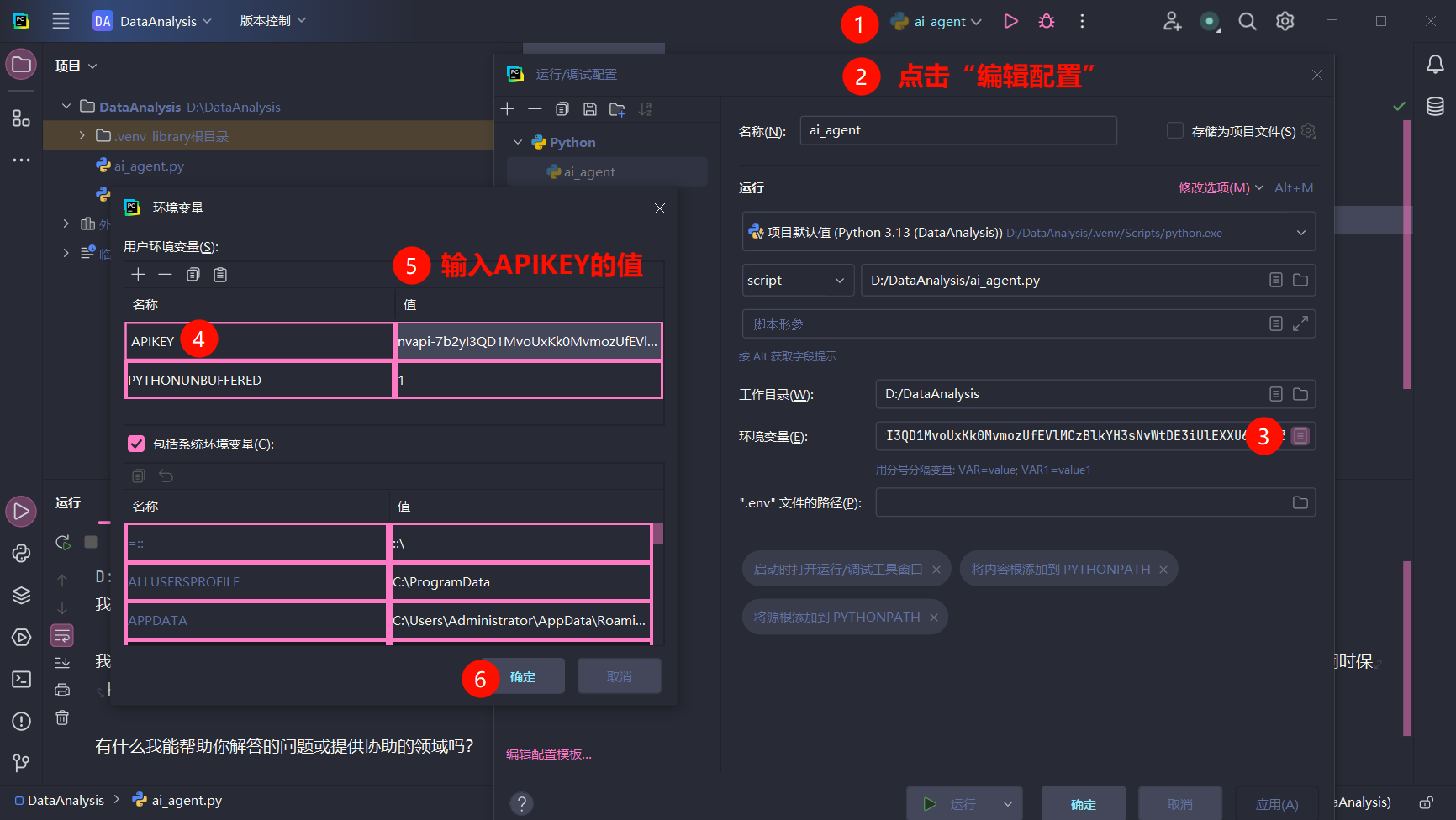 注意:API KEY不要直接写在代码中。安全起见,必须写在环境变量中。